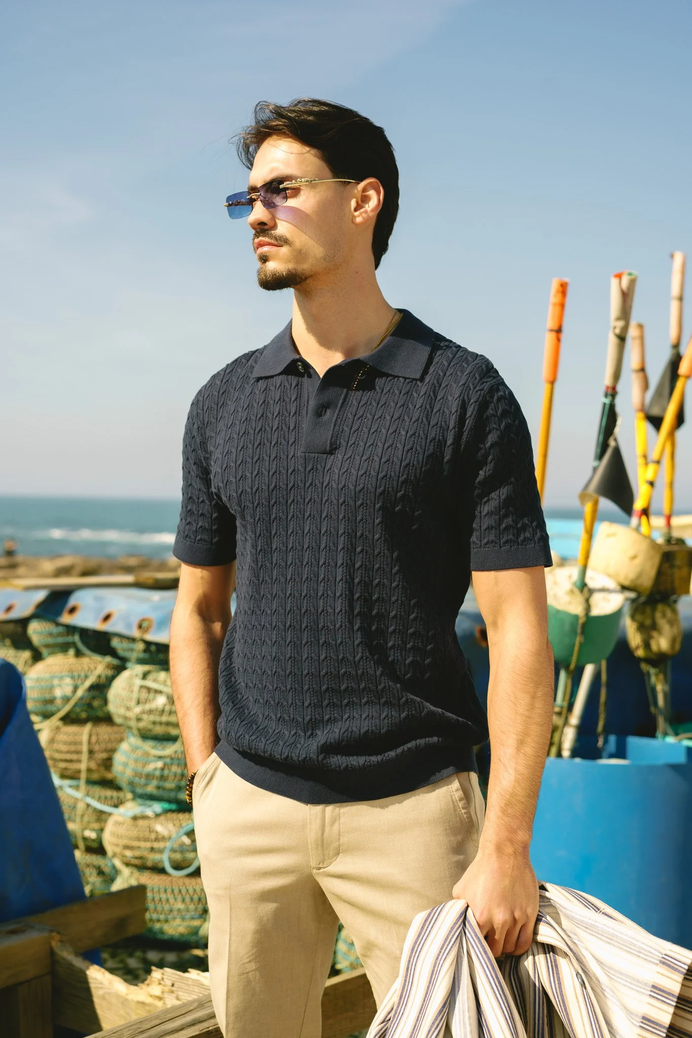 Coleção Casual SS.26O novo editorial de Verão da Prassa Casual ruma à costa, onde o tempo corre mais devagar. Entre barcos de madeira e ruelas caiadas, apresentamos uma coleção que respira a autenticidade das vilas de pescadores Portugueses.